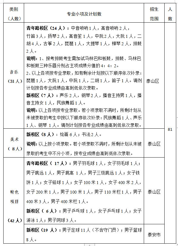 2021年泰安一中艺体特长生招生工作方案 |