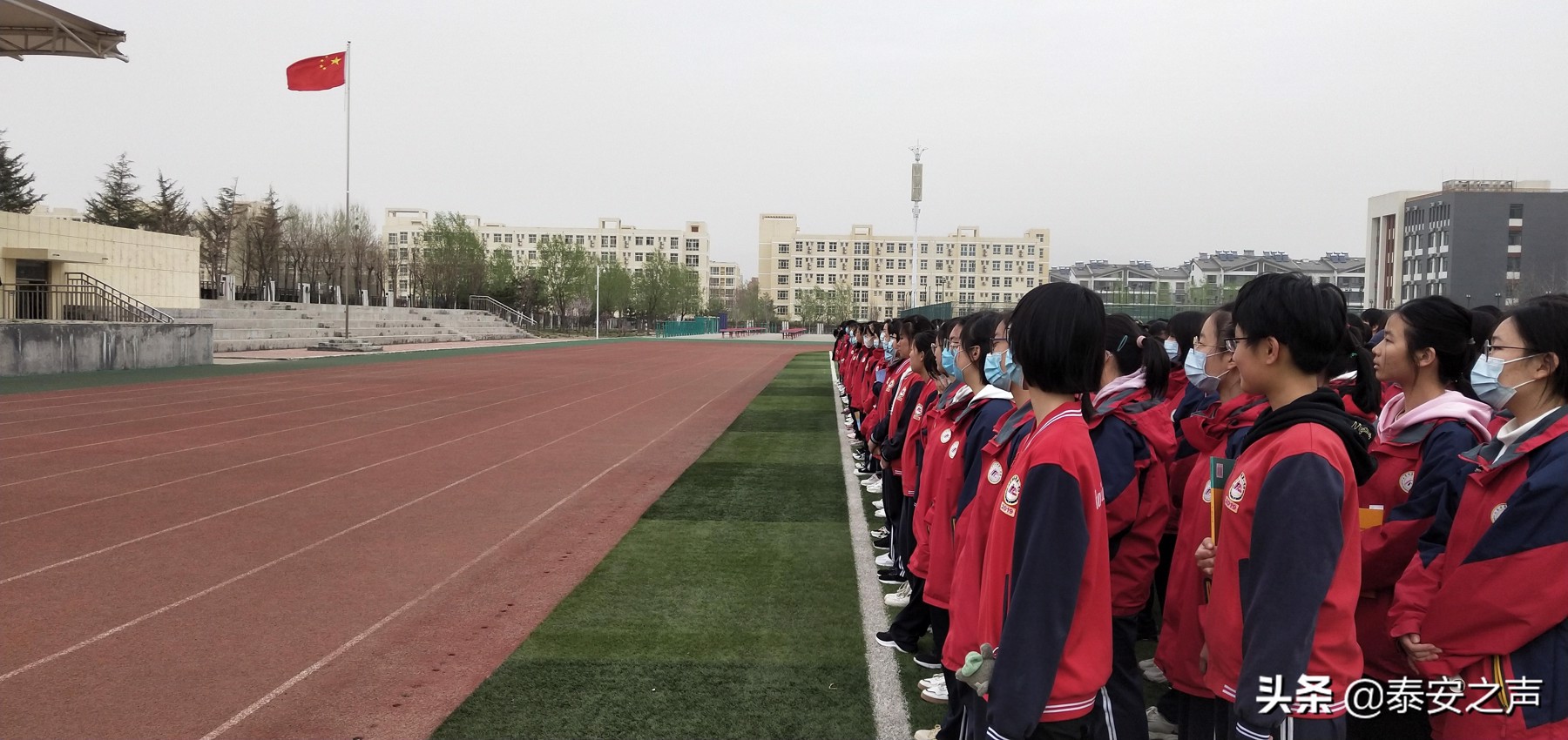 清明将至,气清景明。3月29日,泰安一中2019级全体师生迈着坚定的步伐,齐聚于学校西操场,举行“卫国戍边英雄浩气长存•青春向党我辈勇于争先”主题升旗仪式。