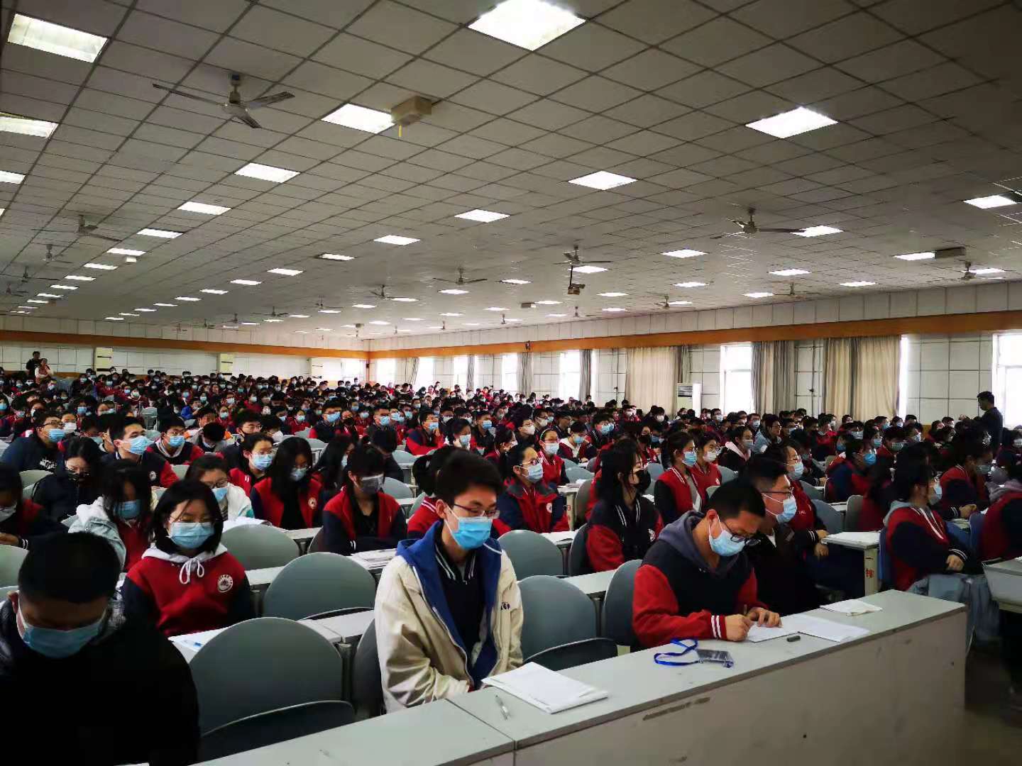 “长风猎猎战鼓催,旌旗飞扬马蹄碎”。带着对美好未来的憧憬,2018级隆重举行2021年高考考前40天动员大会,目的是提振精神、鼓舞士气、再接再厉、誓夺今年高考的新胜利,实现同学们心中的大学梦。时光如白驹过隙,离高考仅剩40余天的时间了,因此同学们从现在起必须要以满怀的信心投入竞争,以充沛的精力投入复习,以坚强的毅力投入决战。奋战四十天,让青春无悔,决胜六月,为母校增辉。